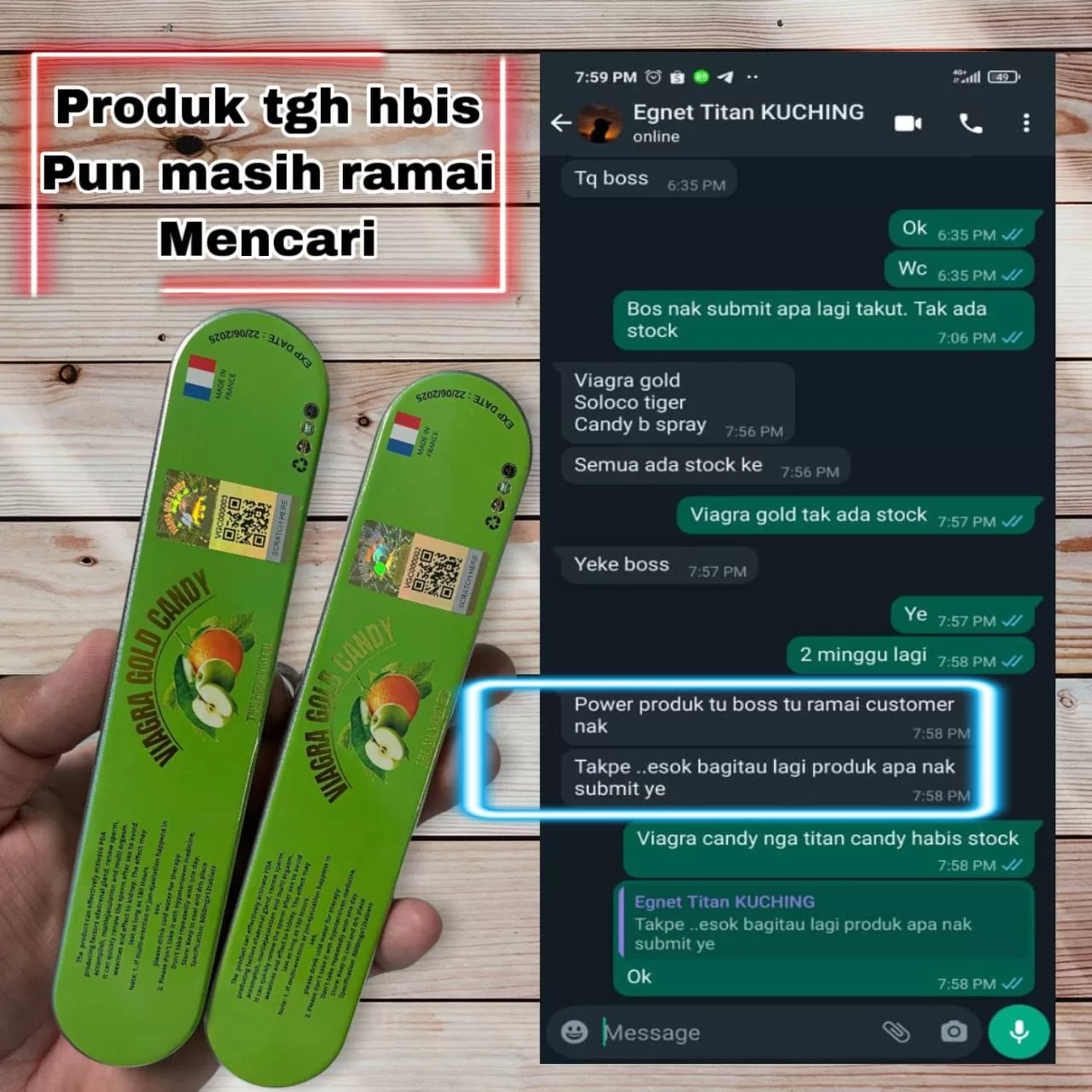 β βLepas cuba Viagra Gold Candy, memang lain macam. Zakar keras macam besi, tahan sampai isteri puas!β β Ahmad, 35 tahun.